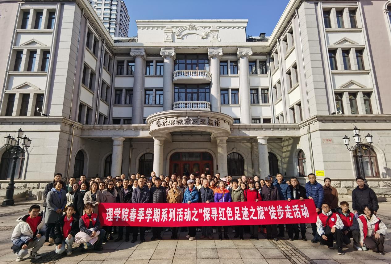 为深入学习贯彻习近平生态文明思想和习近平总书记视察龙江时的重要指示精神,理学院开展春季学期教职工系列活动之“探寻红色足迹之旅”徒步活动。邀请学校离退休工作处朝阳第三党支部退休教师、学院绿冀青年志愿者协会团支部青年学生,结对共同前往哈尔滨市博物馆这一城市灵魂的窗口,开展研学参观活动,一同感悟这座记忆厚重的老城多年来跳动的脉搏和岁月留下的温度。