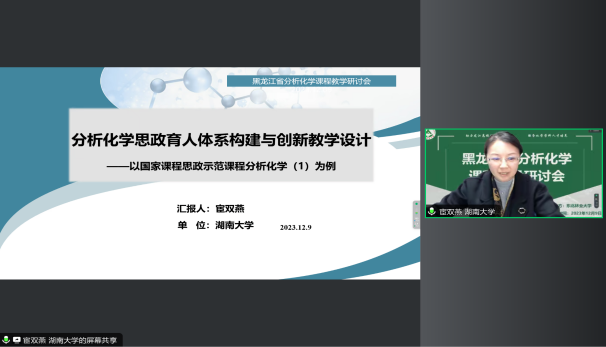 为全面贯彻习近平总书记在党的二十大报告中提出“全面提高人才自主培养质量,着力造就拔尖创新人才”的重要论断,深入落实立德树人根本任务,响应黑龙江省地方高校“101计划”,搭建分析化学领域高校教师沟通交流的平台,12月9日,由东北林业大学主办、化学化工与资源利用学院承办的黑龙江省分析化学课程建设探讨会召开。会议采取线上线下相结合的形式,围绕黑龙江省分析化学课程建设作了研讨交流,并探讨我省分析化学虚拟教研室的筹备组建事宜。