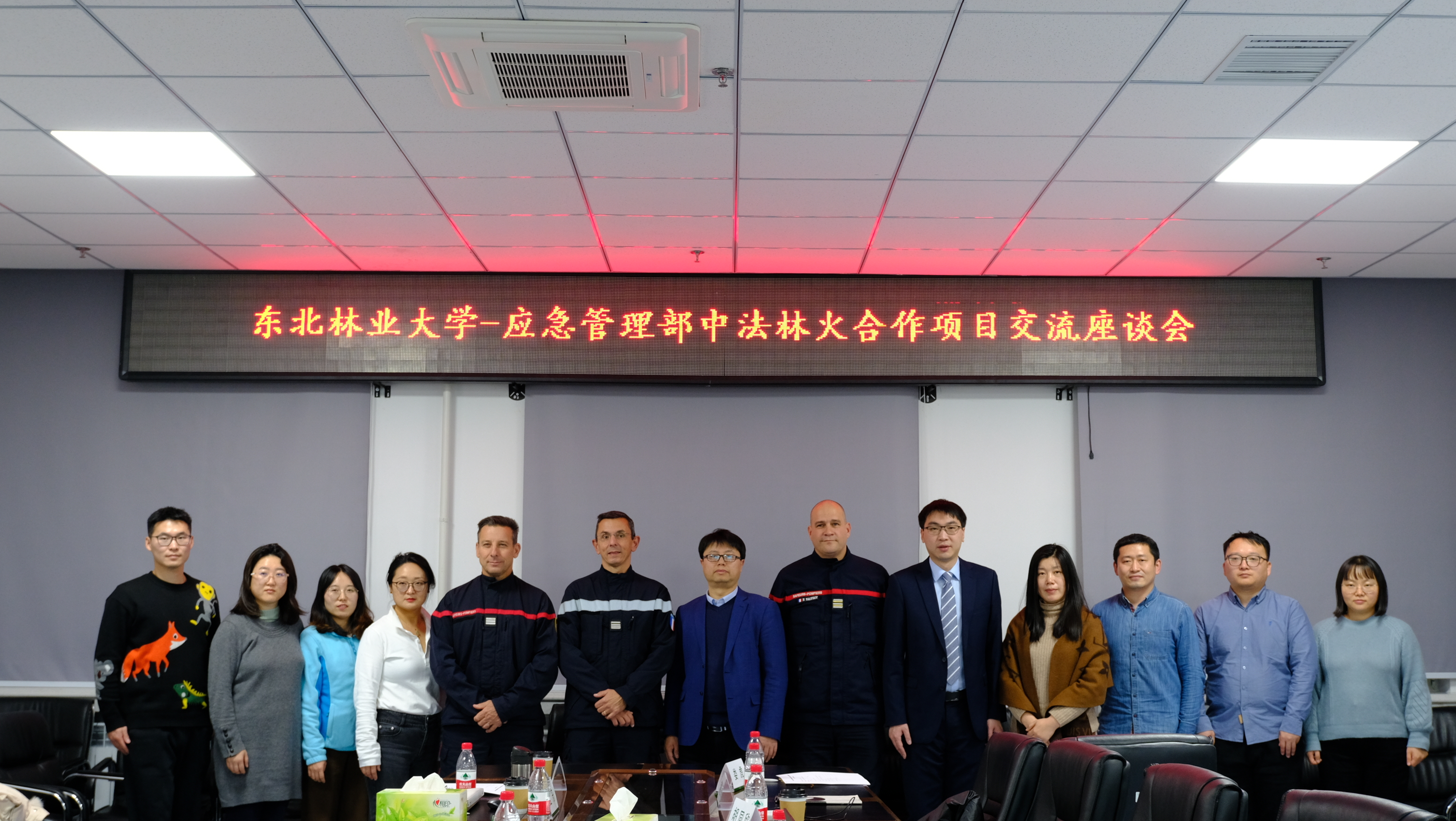 座谈会上,孙龙教授对应急管理部和调研团一行一直以来给予我校在森林火灾防控领域开展合作与交流表示衷心感谢,并对我校自主开发的森林草原防控系统平台作了全面介绍。法国南部部际参谋部米歇尔中校与法国加尔省火灾与救援办公室热罗姆·雅莱少校对法国现行森林火灾预警体系作了系统介绍。双方就森林草原火灾预警系统构建、森林可燃物调控、可燃物类型划分、森林火行为蔓延模拟等议题展开深入讨论。