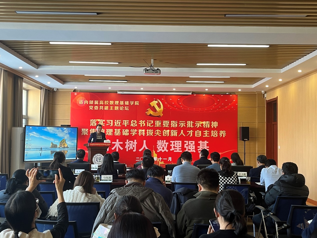 为落实习近平总书记重要指示批示精神,聚焦数理基础学科拔尖创新人才自主培养,11月29日下午,省内部属高校数理基础学院“树木树人 数理强基”党建论坛在我校举行。哈尔滨工业大学数学学院和物理学院、哈尔滨工程大学物理与光电工程学院和数学科学学院、东北林业大学理学院相关负责人参加论坛,共谋数理基础学科拔尖创新人才自主培养之策。