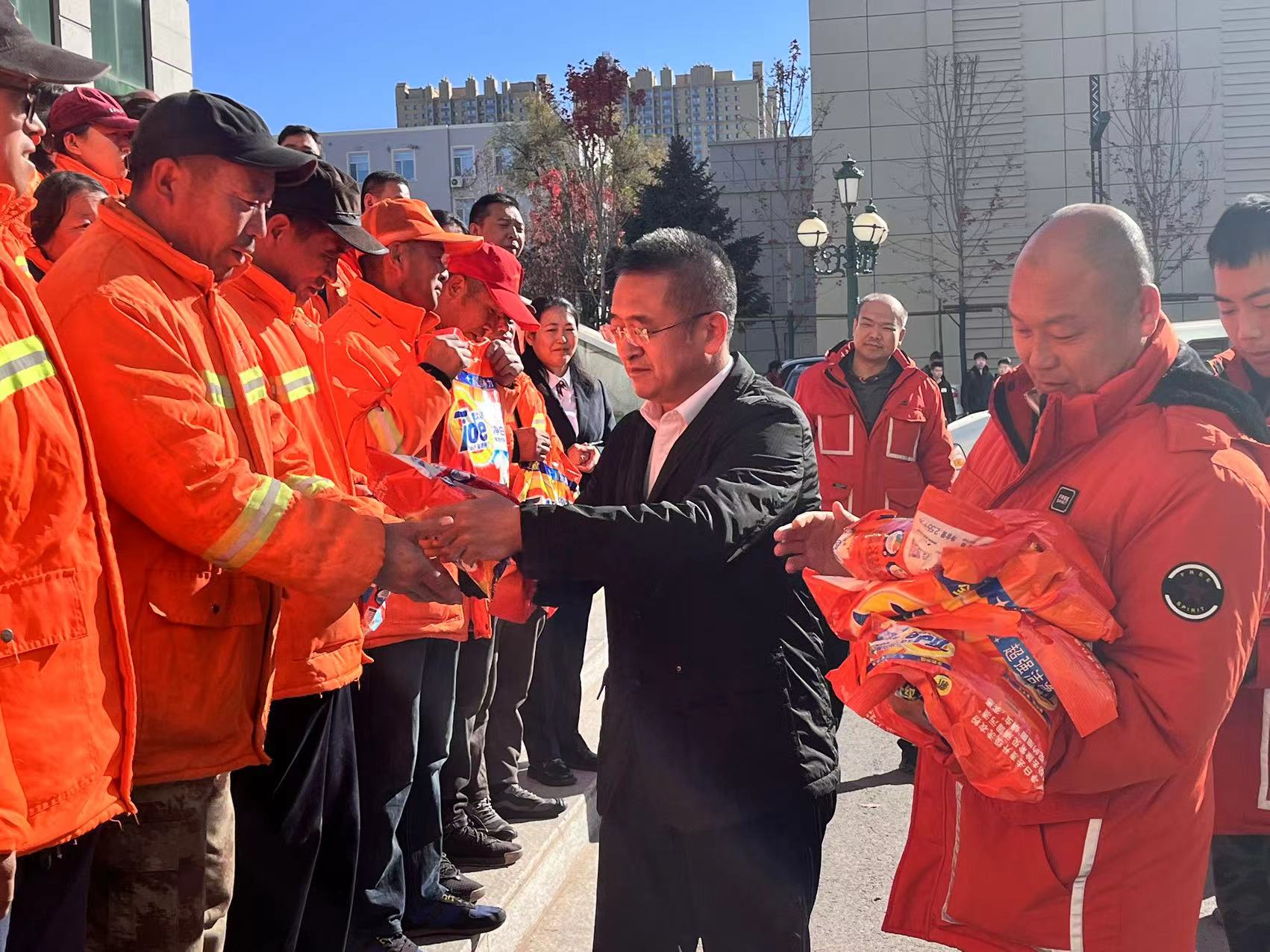 节日之际,后勤保障部为全体保洁员准备了洗衣粉、生活用纸和爱心理发券,为他们的生活送去便利,满足保洁员爱洁爱美的天性。10月26日上午,后勤保障部举行了爱心用品赠送仪式,向环卫工人充分表达理解、尊重、关爱的工作理念,向校园保洁致以节日的问候,感谢他们为建设美丽校园和提升校园形象做出的努力和贡献,让他们感受到集体的关怀和温暖,增强职业认同感与幸福感。