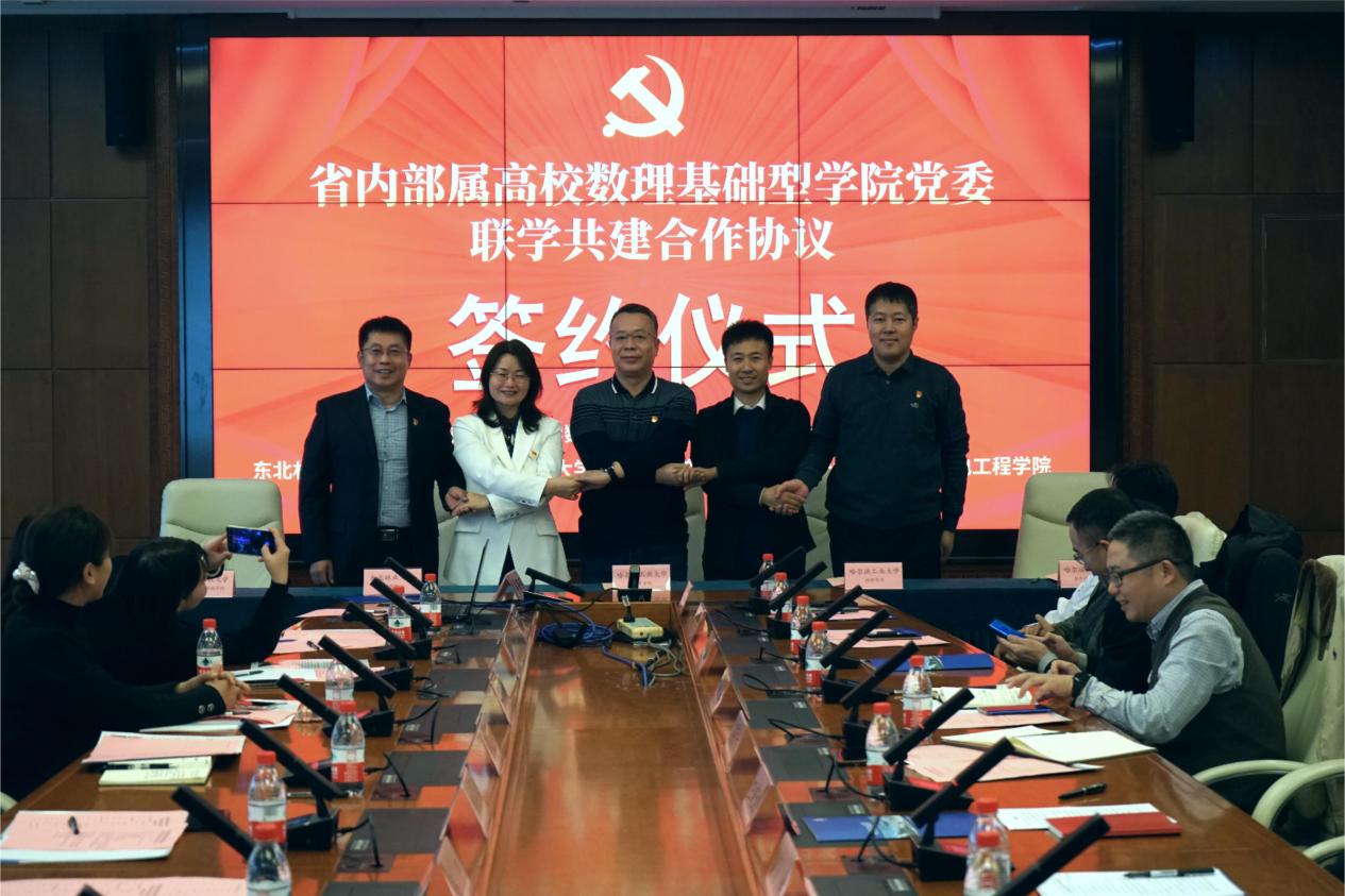 签约仪式上,我校理学院党委书记李玉荣代表学院与其他四个学院党委书记共同签订合作协议书。协议书的签订标志着三个学校的五个学院将进一步加强合作、深化交流,共同探索数理基础型学院高质量党建引领高质量发展,服务龙江振兴的新思路、新举措。