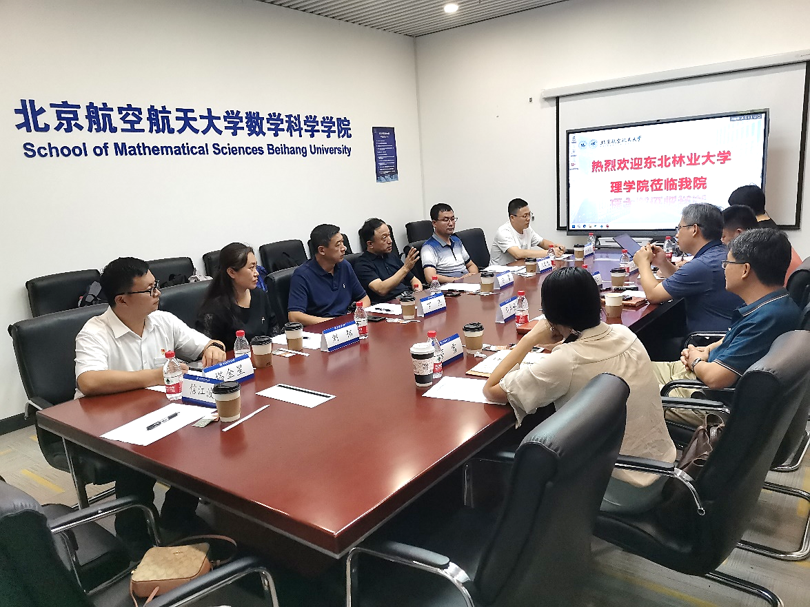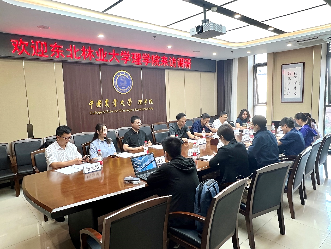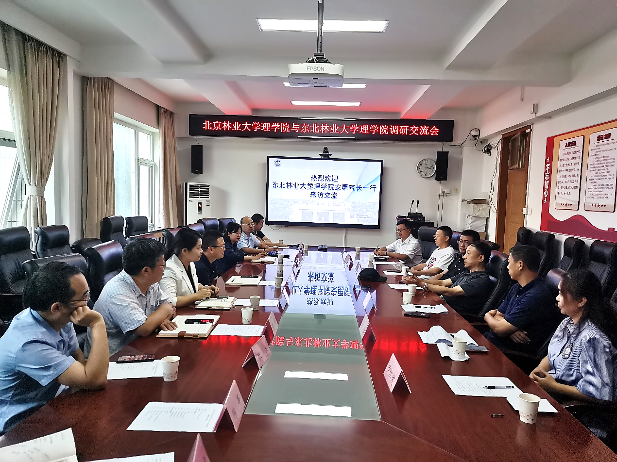 在北京林业大学理学院,院长汪沛对东林理学院一行到来表示欢迎。院党委书记龙晓凡从部局市共建、一校两区讲起,介绍了学院服务全校人才理学素养培养的定位、国家林木种质资源库项目、一流课程建设等工作。双方就高层次人才引进、学科发展及方向、新教师个人发展、教学创新大赛备赛、学生表达力培养、深造率等工作进行了交流。安勇表示,东林理学人将做好战略规划,抓住新发展机遇,争取尽快建成数学一级博士点、物理学一级硕士点,为东北全面振兴贡献东林理学人的力量。