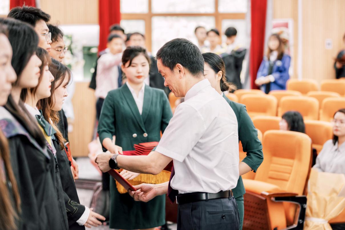 典礼最后,刘志明为毕业生发放了纪念品,一枚枚雕刻着毕业生姓名和学号的戒指寄托着深深的祝福与期望。