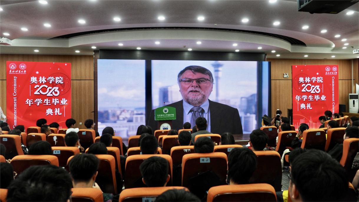 奥克兰大学理学部部长John Hosking教授也通过视频的方式向2023届毕业生们送来了祝福。他充分肯定了同学们艰辛付出,并祝贺同学们迈入社会,走向世界,事事顺遂,都能取得理想的成就。