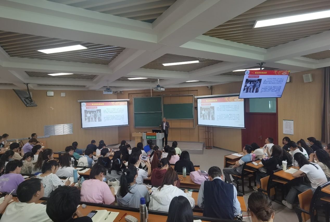 “以刘成栋老院长为代表的老一辈东林人创业维艰的精神太感人了……”为深入学习贯彻习近平新时代中国特色社会主义思想,5月24日,理学院师生在锦绣T402教室共上一堂主题党课。学院党委邀请校关工委银龄报告团成员杨滨章教授,为理学院师生党员及第十八期积极分子暨发展对象培训班学员带来题为《传承东林精神,书写东林新篇》的主题党课。