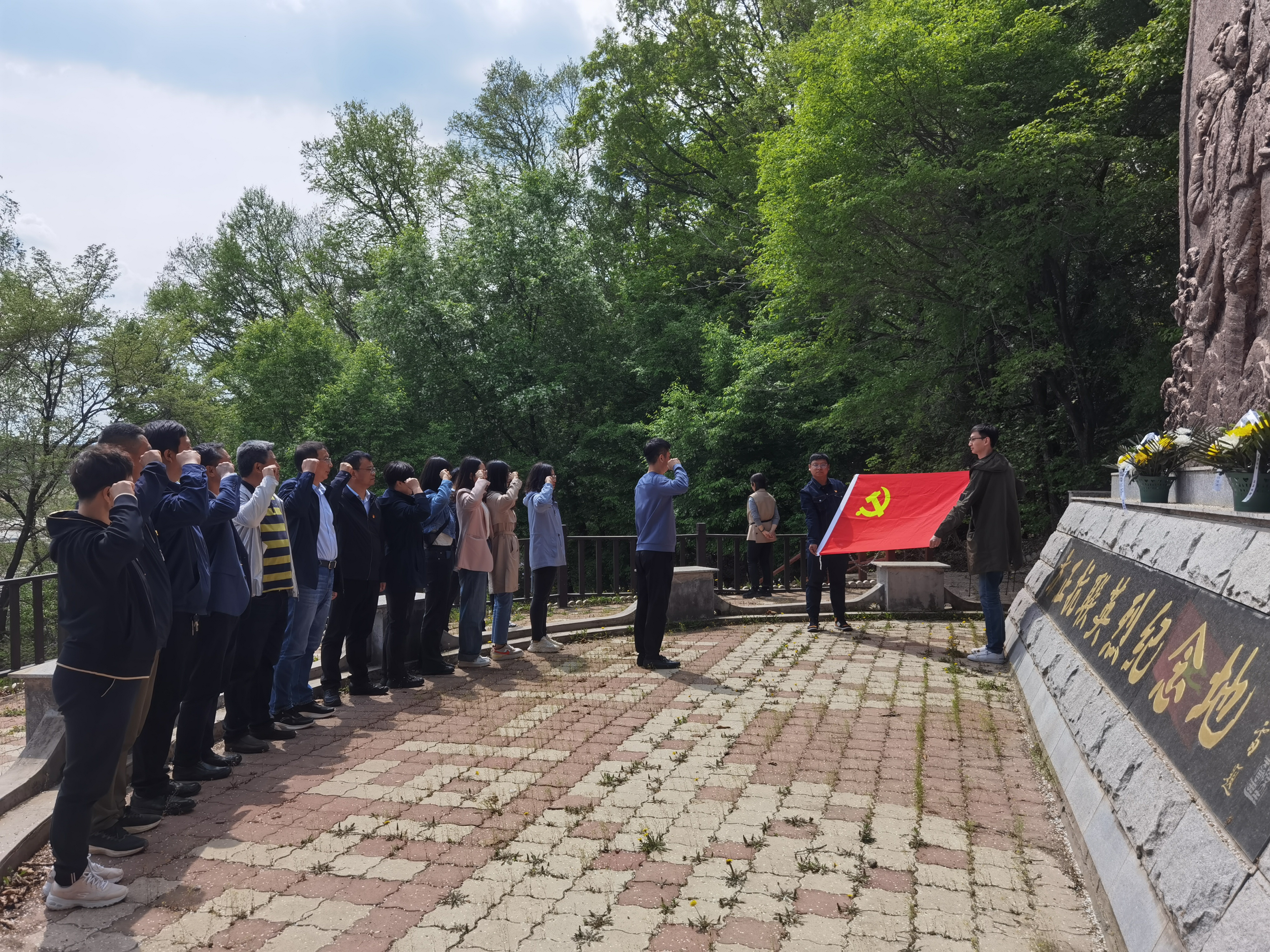 全体党员干部怀着对革命志士的崇高敬意和深切缅怀,跟随着讲解员的指引,细心阅读了纪念地每一处文字介绍和翔实记载了英烈事迹的碑文。重走抗联路,追寻先烈艰苦奋斗的足迹;参观抗联遗址,重温艰苦卓绝的历史;在抗联英雄群雕和党旗面前,全体党员干部高高举起右拳,由学院院长马国勇的领誓,重温了入党誓词;在刘兴亚英烈雕像前,学院党委书记王维宏为全体党员干部上了一堂生动的微党课。