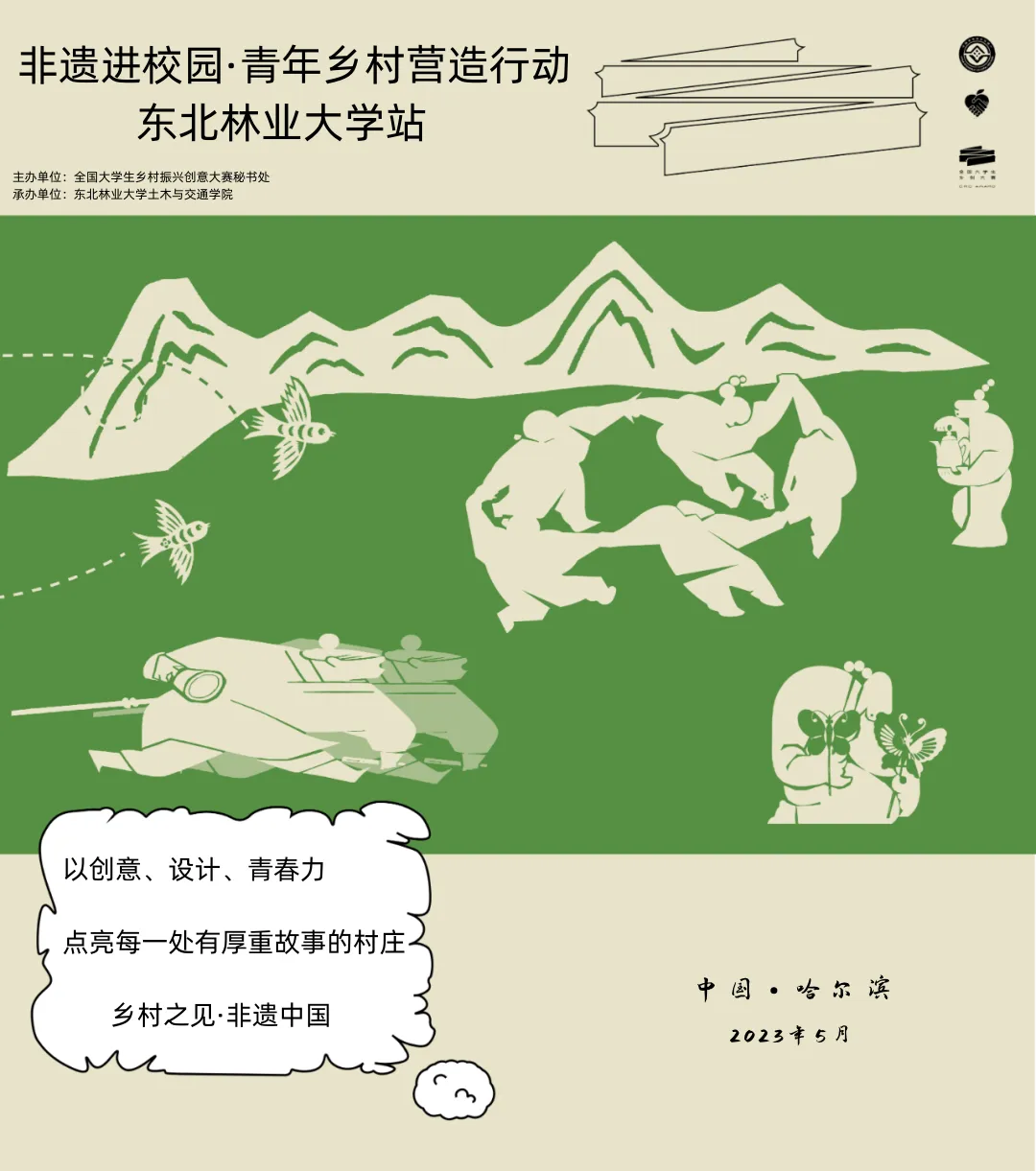 据悉,“非遗进校园·青年乡村营造行动系列活动”由全国大学生乡村振兴创意大赛升级而来。大赛秉承“创意,让乡村更美好”的理念,在全国率先探索出乡村出题、高校答题、真题真做、成果落地,“政校企村”四位一体的高校服务乡村振兴的模式。本次活动集中展示了大赛2022年于河南省赛点的创意成果,让更多青年学生近距离感受“非遗+乡村振兴”的独特魅力,引导广大师生立足专业优势,发扬东林精神,践行“替河山装成锦绣,把国土绘成丹青”的豪迈誓言,将论文书写在美丽乡村上!
