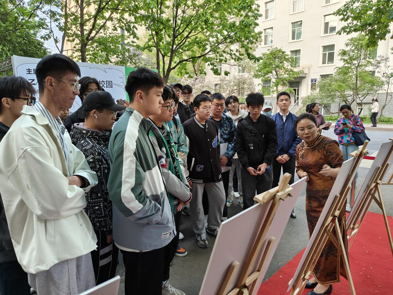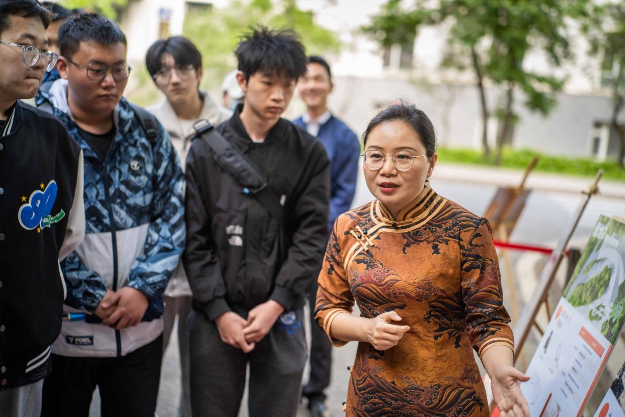 刘亚辉为现场师生详细而生动地讲述了展板背后许多的特色创意与非遗故事,“七个鸡窝”改造而来的空间项目、泥咕咕“泥小妮”的文创项目都给大家留下深刻印象。其中,特别提到土木与交通学院师生的作品“栾川县重渡沟风景区非遗民宿改造项目”,“栾小福”的形象IP,瞬间拉近了同学们与非遗创新实践的距离。