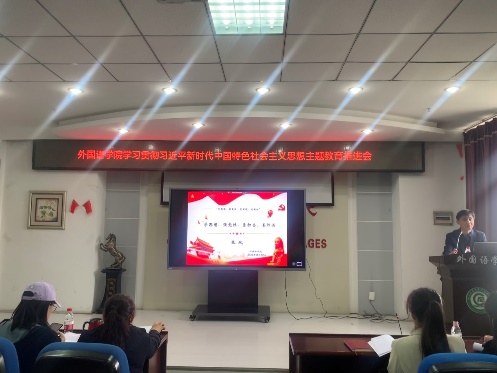 5月12日,外国语学院在文博楼1019,召开学习贯彻习近平新时代中国特色社会主义思想主题教育工作推进会,学院领导班子成员、全体师生党员参加会议。会议由学院党委副书记、副院长郭林主持。