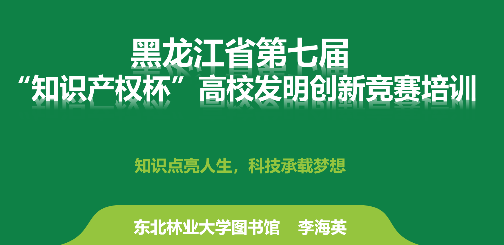 为了加强我校师生对黑龙江省第七届知识产权杯高校发明创新竞赛的认识,鼓励师生积极参与竞赛并获得优异成绩,5月11日,图书馆与学校本科生院,共同举办了 “黑龙江省第七届知识产权杯高校发明创新竞赛”线上宣讲活动,主讲人为图书馆研究馆员李海英。