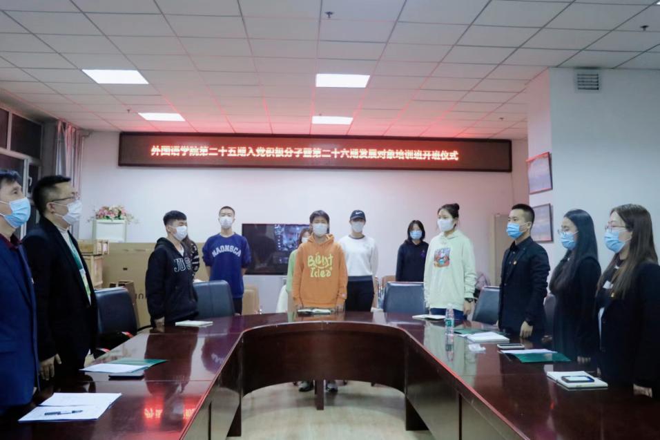 外国语学院党委书记张斌、党委副书记兼副院长郭林、研究生辅导员李梦阳、院团委书记兼19级辅导员袁野、学院党委组织员兼20级辅导员高敏,马克思主义学院研究生辅导员王振越、21级辅导员周宇航出席开班仪式。仪式由培训班班主任、22级辅导员王圣妍主持。外国语学院第二十五期入党积极分子暨第二十六期发展对象参加培训班学习。