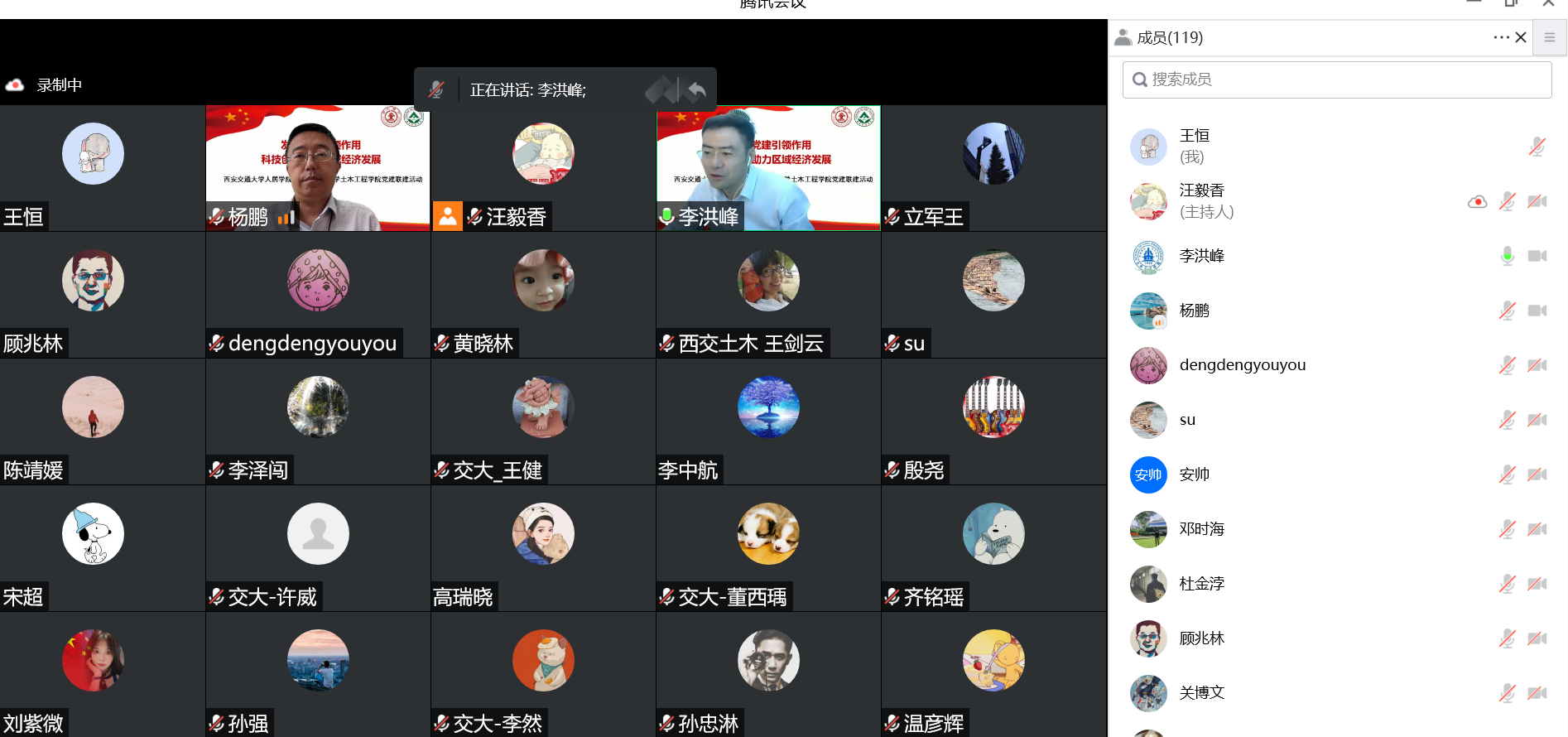 为更好发挥党建引领作用,促进科技创新助力区域经济发展, 9月21日上午,东北林业大学土木学院党委与西安交通大学人居学院党委线上开展了主题为“发挥党建引领作用、科技创新助力区域经济发展”的经验交流会。