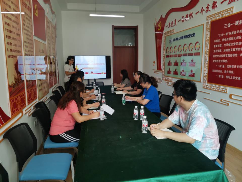 6月20日,在距离七十年校庆倒计时20天之际,理学院数学系教工第二党支部组织开展了专题党课活动。支部宣传委员潘宁以《深刻领会十三次党代会精神,扎实耕耘高校科技振兴沃土》为题,为支部党员讲授了一堂生动、深刻的微党课。