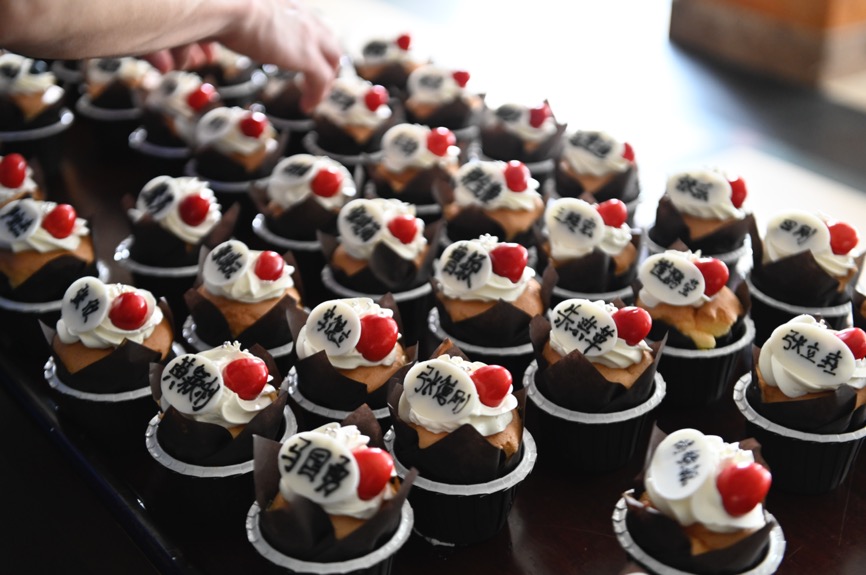 煮饺子的间隙,学院老师们为毕业生们分发了精心准备的具有毕业生名牌的纸杯蛋糕。