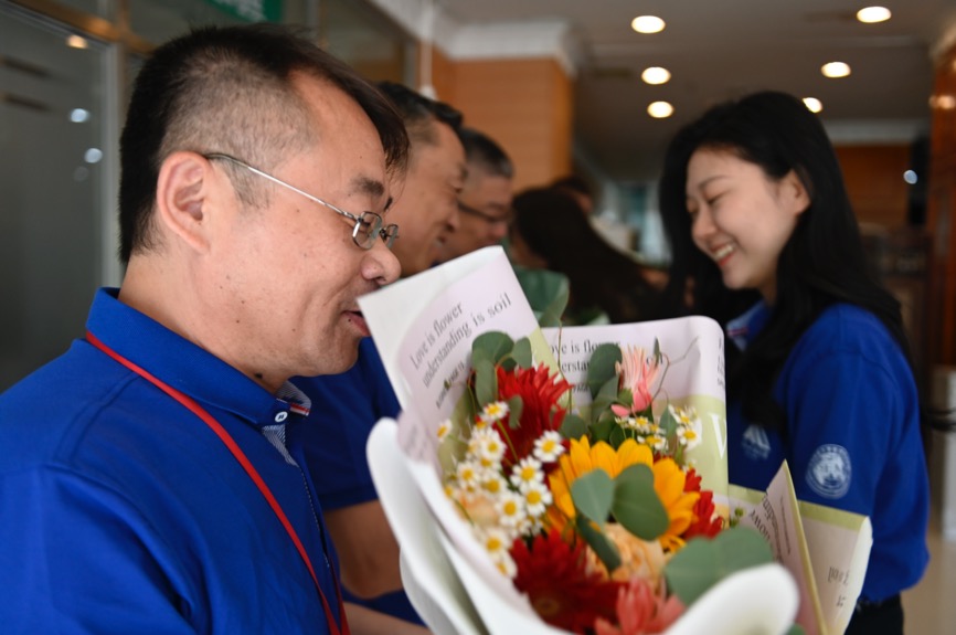 饺子宴结束后,学生代表向导师们献上鲜花,以表达真挚谢意与崇敬之情。导师们也为毕业学子赠送了毕业纪念品,并祝贺毕业生们毕业快乐,踏上人生新征程,开启新篇章。