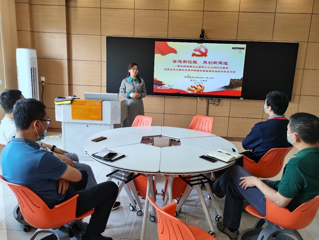 丁宇婷从充分认识省第十三次党代会的重大意义、总体领会报告的基本框架、深刻理解龙江未来五年振兴发展的发展方向和牢牢把握龙江未来五年振兴发展的主要任务等方面,聚焦“六个龙江”“八个振兴”“九个坚定不移”等重要内容,对省第十三次党代会精神进行了解读。丁宇婷结合支部特点对支部提出了四个要求,一要服务省委省政府战略发展方向;二要服务学校发展方向,即“双一流”建设;三要充分依靠和利用学校特色优势;四要瞄准思想政治领域发展需求,即复合应用型爱国爱党人才培养、全球社会主义人才治理等。她要求支部全体党员要从课程思政、组织建设、找差距、抓落实这四个方面深入贯彻省第十三次党代会精神,在推动学院基层党组织革新,助力学校“双一流”建设上求实效,强力推进各项工作有序发展,为加快建设特色鲜明的高水平理学院而不懈奋斗。