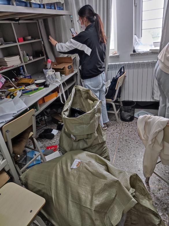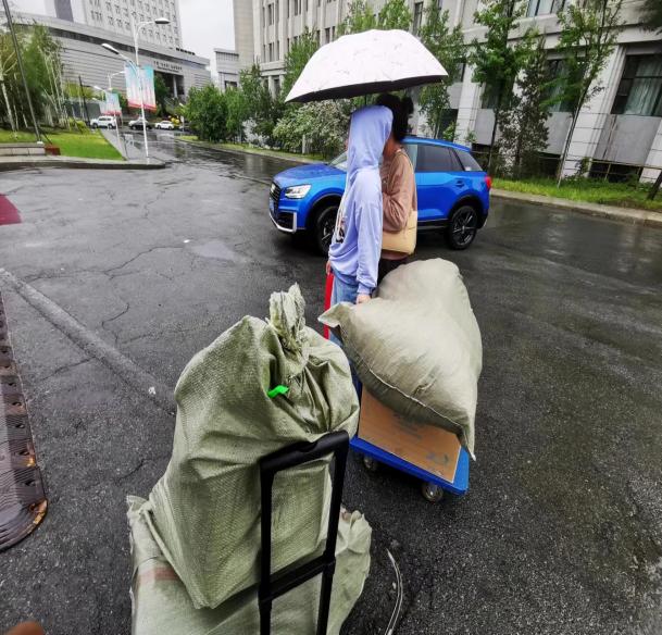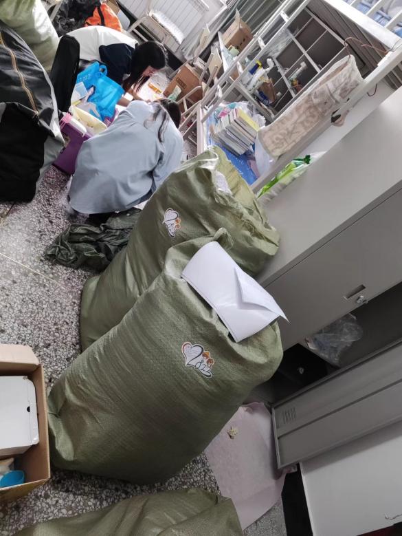 当天下着小雨,但是每位党员和积极分子们都认真负责、不辞劳苦,把毕业生的行李打包完毕后送到快递中心邮寄后,又回到毕业生寝室把垃圾清扫干净。原本物品满满的寝室,在清扫完毕后干干净净,干净明亮。