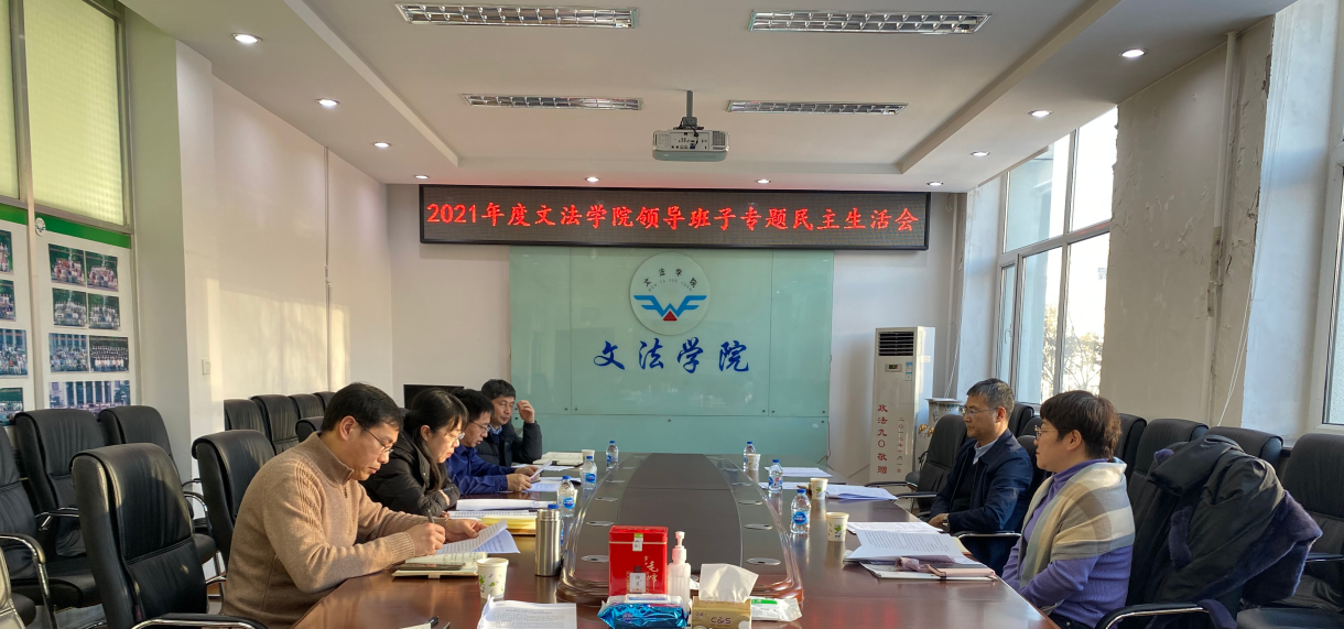 根据召开党史学习教育专题民主生活会的相关通知要求,2022年1月5日下午,文法学院在文法楼201-6会议室召开2021年度处级领导班子和党员领导干部党史学习教育专题民主生活会。学校第五督查组组长、党委常委、副校长雒文虎参会并作点评讲话,党委统战部常务副部长李文秋共同参加会议,学院党委书记侯彦杰主持会议。
