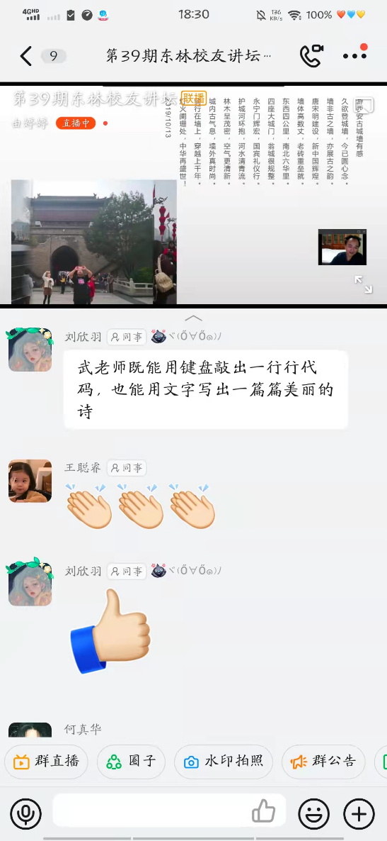 理学院2020级信科二班王聪睿表示,“在武苏里校友的分享中,我了解到了武老师本人不仅是一位学术大咖,同时也是一位热爱生活、极具文学情怀的诗人。他与我们分享了他求学之初的艰辛,以此来勉励我们要笑看人生。也与我们分享了他在学术科研之路的漫长过程,从最开始的‘门外汉’,到后来的‘领路人’,做学术研究是一个需要毅力坚持的长期阶段。武学长和我们分享他生活中所创作的诗篇,那也正是一名‘理工男’的诗情画意。武学长今天的分享让我收获满满,他对于学术教育事业的热爱,让我看到了一名东林人的本色与情怀,我们要以武学长这样的优秀校友为榜样,做新时代的东林人,展现东林青年积极向上的精神风貌!”