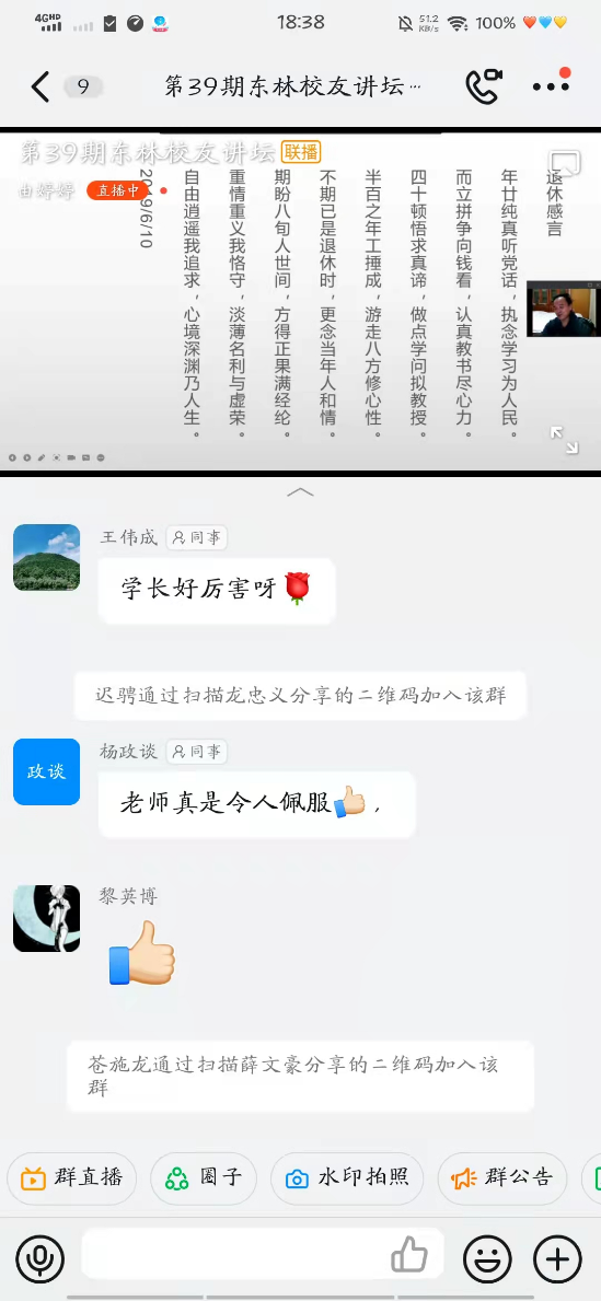 11月9日晚,中国农学计算机应用领域卓越贡献者、西北农林科技大学信息学院教授、1982级理学院数学系杰出校友武苏里做客第39期《东林校友讲坛》。他以“教书育人传学风,奉献青春担使命”为主题,为钉钉直播间里的近千名师生热情讲述了他的丰富多彩人生。