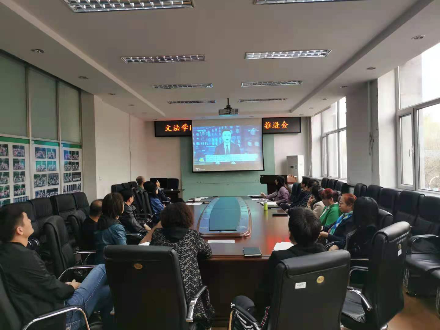 4月21日下午,在世界读书日来临之际,文法学院在二楼会议室召开党史学习教育工作推进会暨学院党委理论学习中心组(扩大)党史学习教育专题读书班开班,学院领导班子、各专业负责人、教工支部书记、学院办公室主任、团委书记、工会主席、教学秘书、科研秘书、党委组织员参加了会议并开展了集中学习研讨,学院党委书记李玉荣主持开班式。
