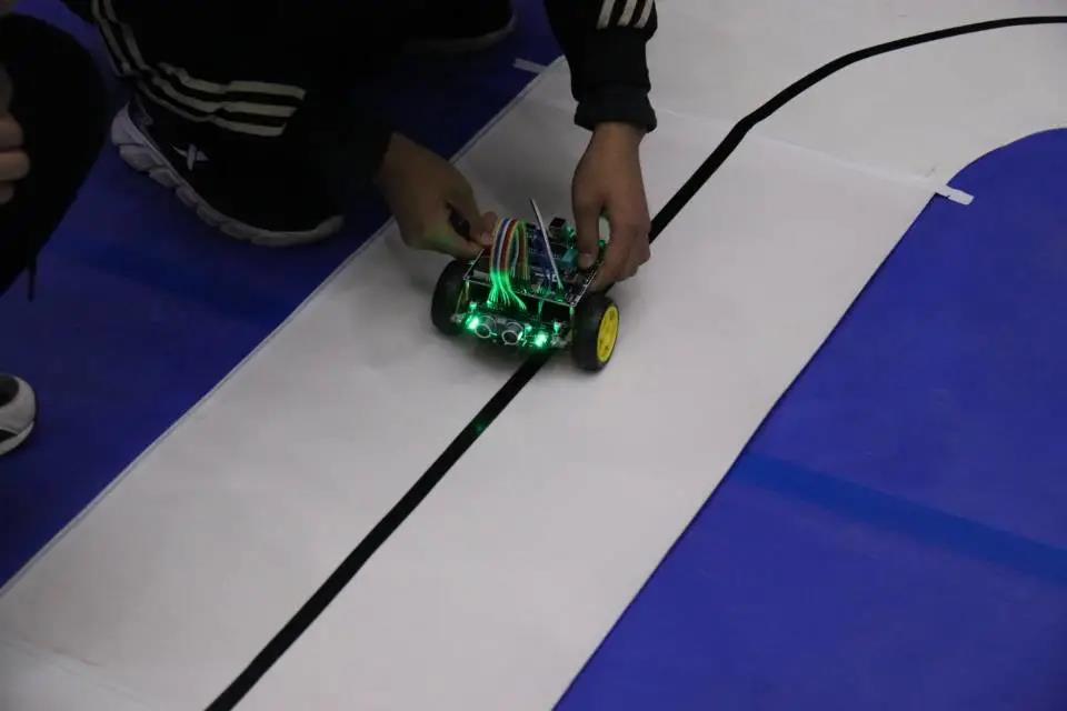 本次大赛设立了初级组(2020级本科生)179人,高级组(2018级、2019级本科生)144人。赛程分为焊接环节和竞速环节。初级组成绩由焊接质量和竞速成绩构成;高级组成绩由测温、避障功能实现情况和竞速成绩构成。焊接环节自11月21日起,经历了赛前培训、组件焊接、车辆调试等环节。最终,初级组87辆车、高级组38辆车进入竞速环节。最终,经过3小时的竞速环节角逐,产生一等奖各1名,二等奖各4名,三等奖各5名。