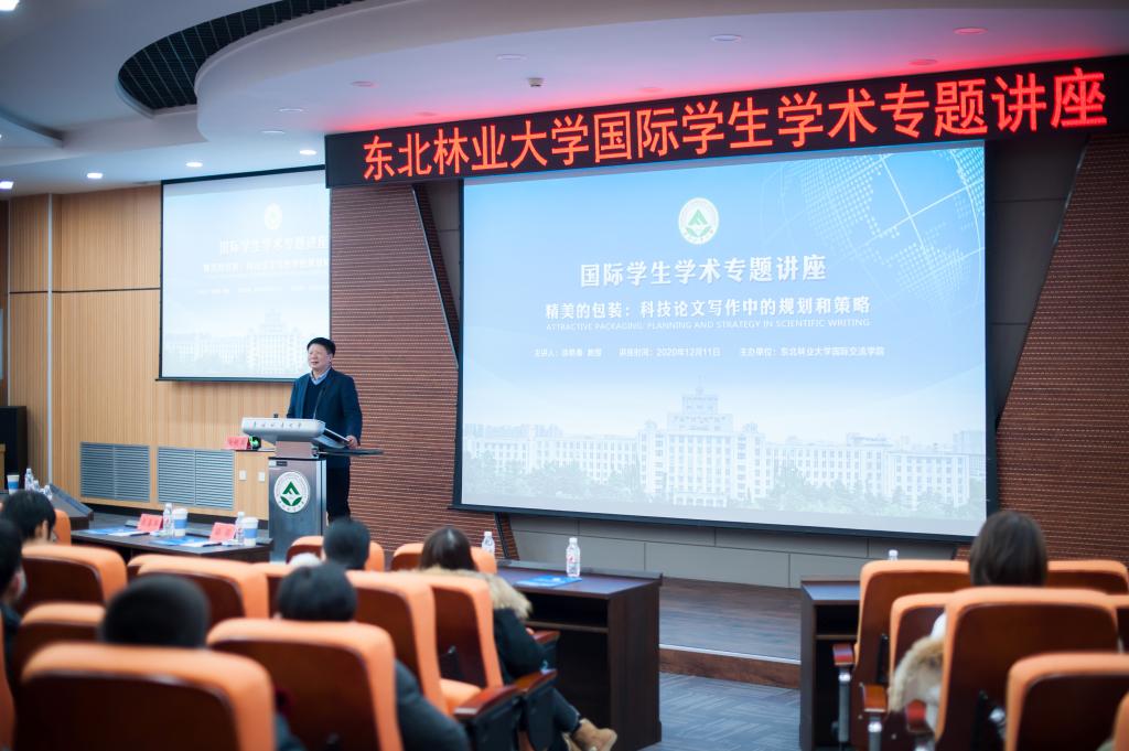 12月11日下午,国际交流学院邀请野生动物与自然保护地学院博士生导师徐艳春在奥林学院101会议室,作了题为《精美的包装:科技论文写作中的规划和策略》的全英文学术专题讲座。国际交流学院副院长岳喜华主持讲座,现场100余名中外学生与线上50余名境内外中外学生聆听了讲座,江苏大学的10余名国际学生也参加了线上讲座。