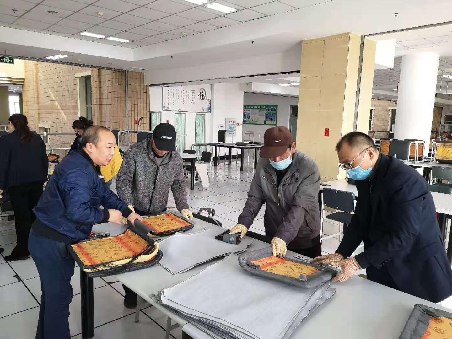 图书馆A5阅览区布面座椅由于长年使用,大部分出现了破损现象,座垫和靠背的泡沫外露,不但影响美观,而且时间长了泡沫缺失,维修将更加困难。按破损座椅数量估算,如果正常维修,将是一笔不小的开支。为了节省经费,图书馆综合办公室工作人员积极开动脑筋,研究自主维修方法,购买批发布料,自己动手制做安装,既节省了布料成本,又省下人工费用。