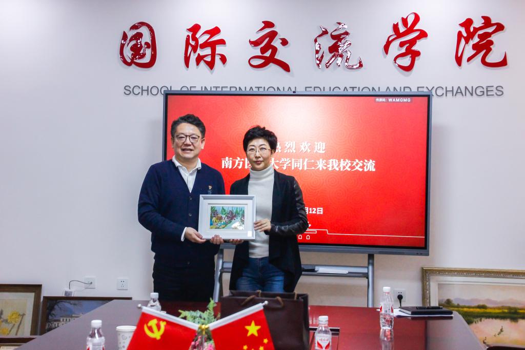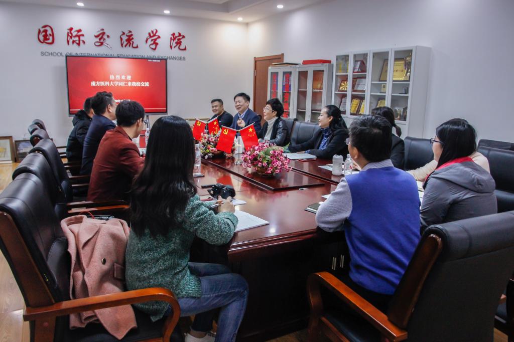 11月12日,南方医科大学国际教育学院党总支书记满强一行四人来到我校国际交流学院,就来华留学教育工作进行调研。国际交流学院直属党支部书记、院长骆颖,副院长岳喜华,副院长刘丹及各科室负责人参加了交流座谈。