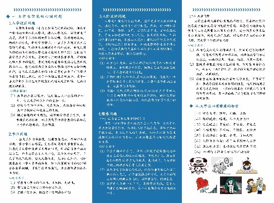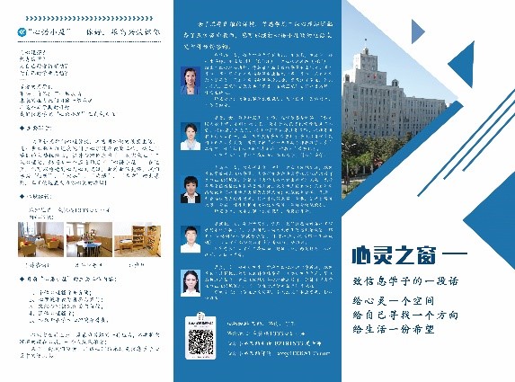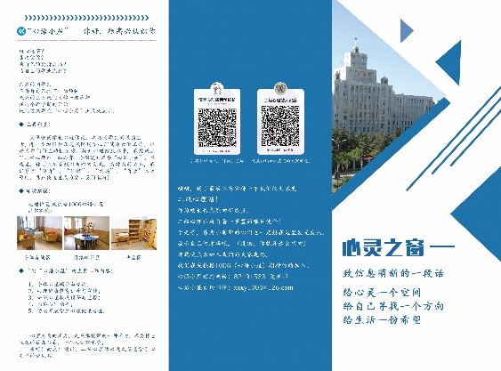 学院二级心理站分别制作了针对新生、老生的《心灵之窗》心理知识宣传册,并点对点、寝对寝发放至学院所有在校生,在宣传心理健康知识的同时,普及大学生常见心理问题及相应调试方法,提醒同学们在遇到自己无法解决的困难时,能及时主动地向宿舍心理联络员、班级朋辈辅导员、年级辅导员和学院二级心理站求助。