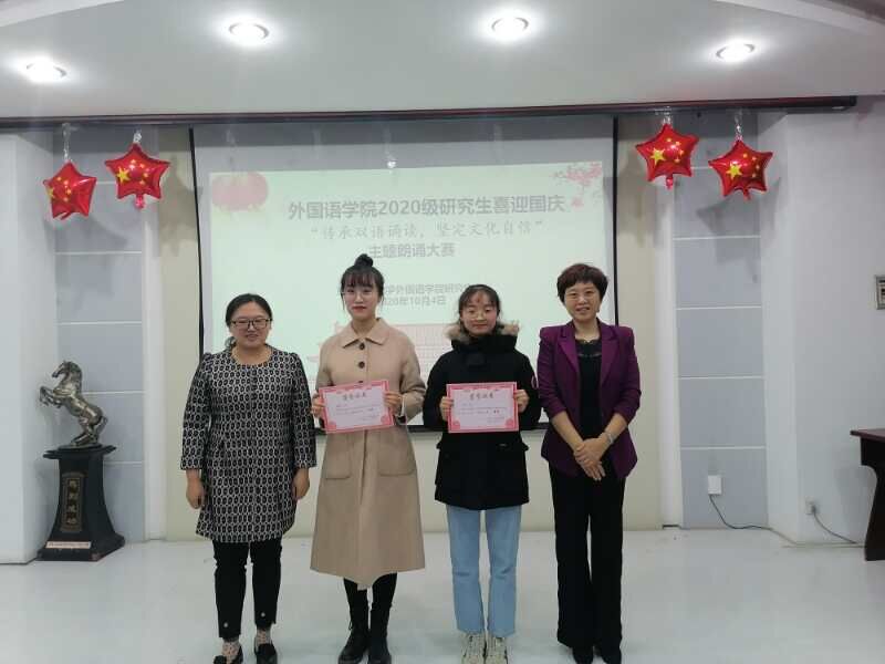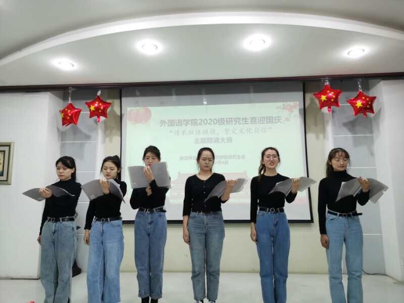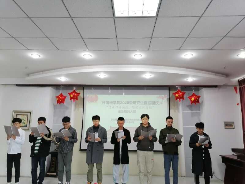 传承中国文化,传播中国声音。外国语学院的研究生以诵读传情,用中英双语诠释爱国情怀。10月4日,外国语学院成功举办了以“传承中华文化,坚定文化自信”为主题的喜迎国庆双语朗诵比赛,学院部分教师代表和辅导员老师莅临了本次朗诵比赛。