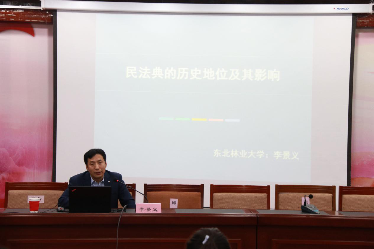 按照学校宣传部要求,9月17日下午2时,土木工程学院、林学院、继续教育学院在动资楼331集中开展了民法典宣讲活动。活动邀请我校民法典宣讲人、文法学院院长李景义作了题为《〈民法典〉的历史地位及其影响》的专题讲座,各学院积极组织师生代表参与学习,会议由林学院党委书记宋妍主持。