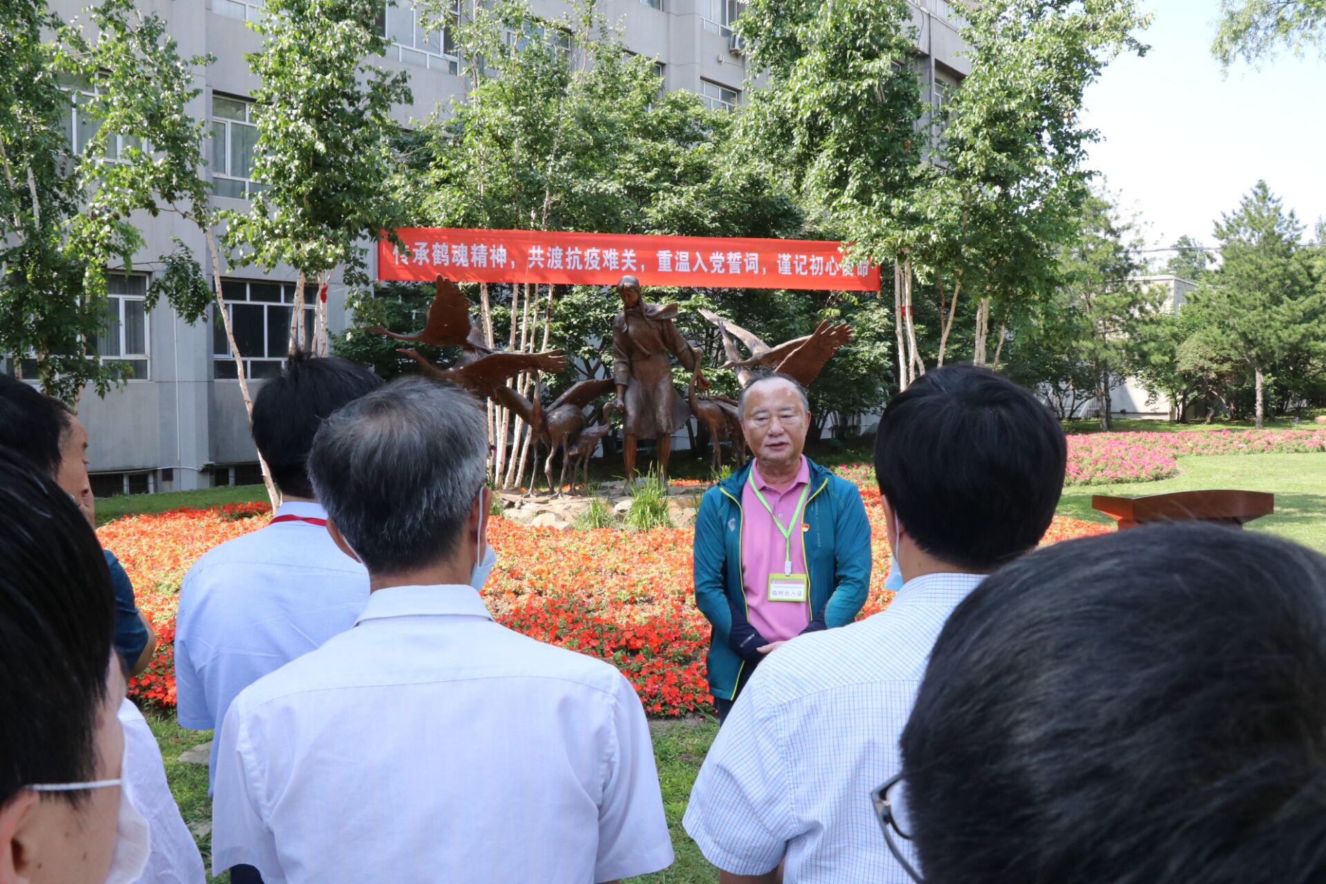 在建党99周年之际,为深入学习贯彻习近平新时代中国特色社会主义思想,进一步激发广大党员干事创业的热情,动保学院党委于7月1日下午,在徐秀娟烈士塑像前通过线上线下相结合的形式组织开展了“传承鹤魂精神,共渡抗疫难关;重温入党誓词,谨记初心使命”主题党日活动。中国工程院院士、动保学院名誉院长马建章,学校党委常委、副校长刘守新,动保学院77级优秀校友吴建平,动保学院78级优秀校友、黑龙江省动物学会理事长王进军,学院领导班子成员、教工党员和学生党员参加了本次活动。
