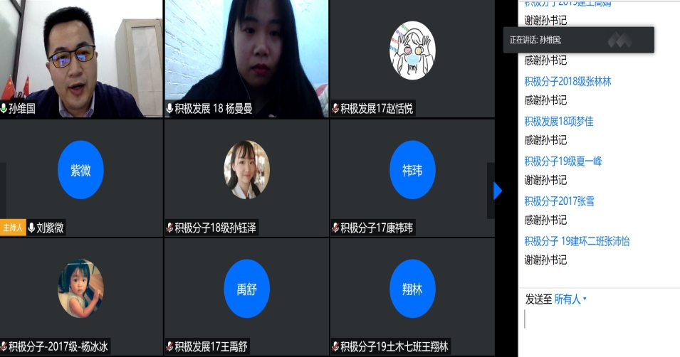 在听“云端”党课后,学员潘志强兴奋地说:“我要认真学习贯彻落实习近平总书记对新时代青年的重要嘱托,将爱国情怀落实在青春战‘疫’的具体行动上,努力早日成为信念坚、政治强、本领高、作风硬的青年党员。”