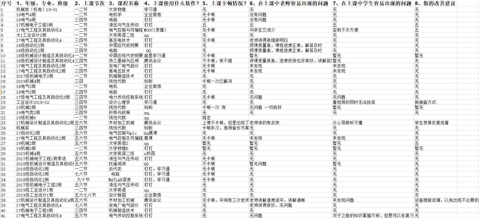 在线教学质量反馈表