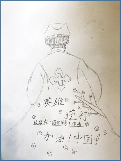 李春伟同志目前在英国访学,世界范围的疫情爆发,让他对祖国的思念与日俱增。他制作的赞美卡想表达的是,残酷的新冠肺炎疫情来袭,无数逆行者迎难而上,挺身而出,奋战一线!举国上下,齐心协力,共同战“疫”!向最美逆行者致敬!向所有抗战在疫情一线的医务人员致敬!