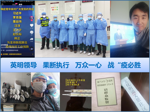 刘美爽同志说:“疫情让我更加坚信中国共产党的伟大,中华民族的团结,中国领导人的英明,在这么短的时间内,14亿人口团结一心初步打赢了疫情防控的人民战争、总体战、阻击战,这是没有任何国家能比得上的!就连世卫组织高级顾问都说:如果我感染了新冠病毒,我希望在中国接受治疗!此次疫情让我们更加热爱我们伟大的祖国!此次疫情那些美丽的逆行者——医护人员,他们不畏艰辛、勇往直前,在这样的时刻挺身而出,让我们感动,让我们流泪!希望疫情过后我们能学会善待医生,改善医患关系,是他们在疫情面前为我们撑起了生命的大伞,让我们见到了生的希望!”