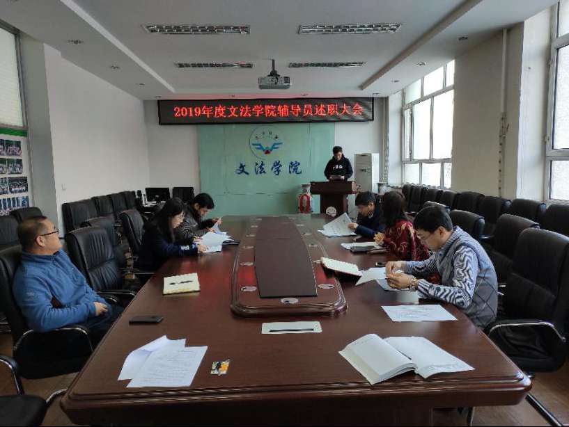 1月2日上午,文法学院2019年度辅导员述职大会在201-6会议室召开,院党委书记李玉荣主持会议,院专职辅导员年度考核工作小组成员参加会议。