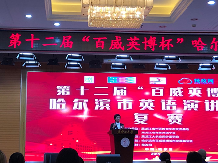2019年12月22日,“百威英博杯”第十二届哈尔滨市英语演讲比赛决赛及颁奖仪式在黑龙江大学举行。来自黑龙江省商务英语学会、黑龙江省外语教育学术交流基地、哈尔滨开发区招商局、百威英博城市发展基金会、哈尔滨工业大学、东北林业大学、哈尔滨商业大学、哈尔滨金融学院、黑龙江省外国语学院及哈尔滨市部分中学的领导、教师与参赛选手齐聚一堂,参与并观摩决赛与颁奖环节。最终,我校2018级风景园林学院环境设计专业陈慧儒获得冠军。