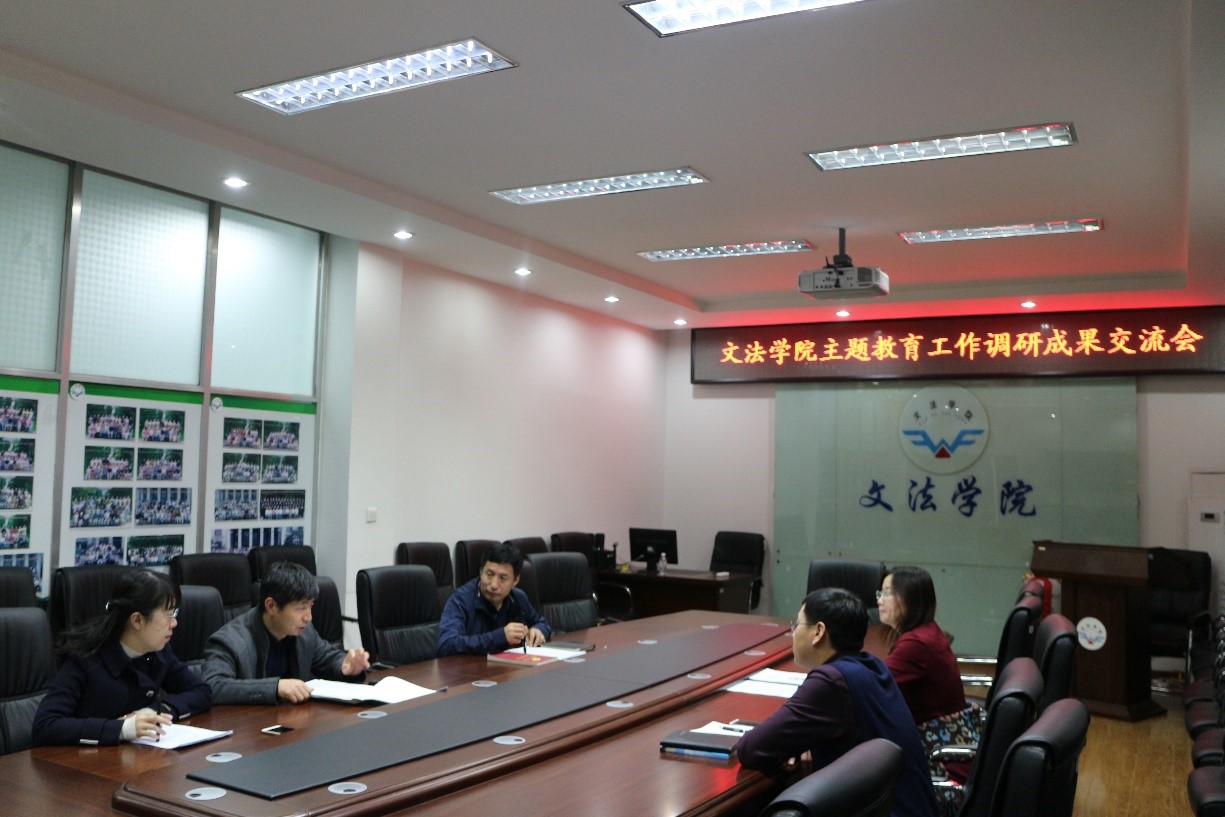 11月4日下午,文法学院领导班子在学院会议室进行了主题教育工作调研成果交流。会议由学院党委书记李玉荣主持。
