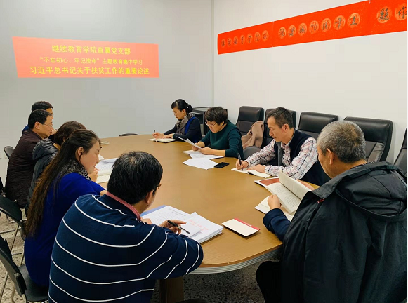 11月11日,继续教育学院直属党支部举行了“不忘初心、牢记使命”主题教育集中学习,深入学习习近平总书记关于扶贫工作的重要论述。