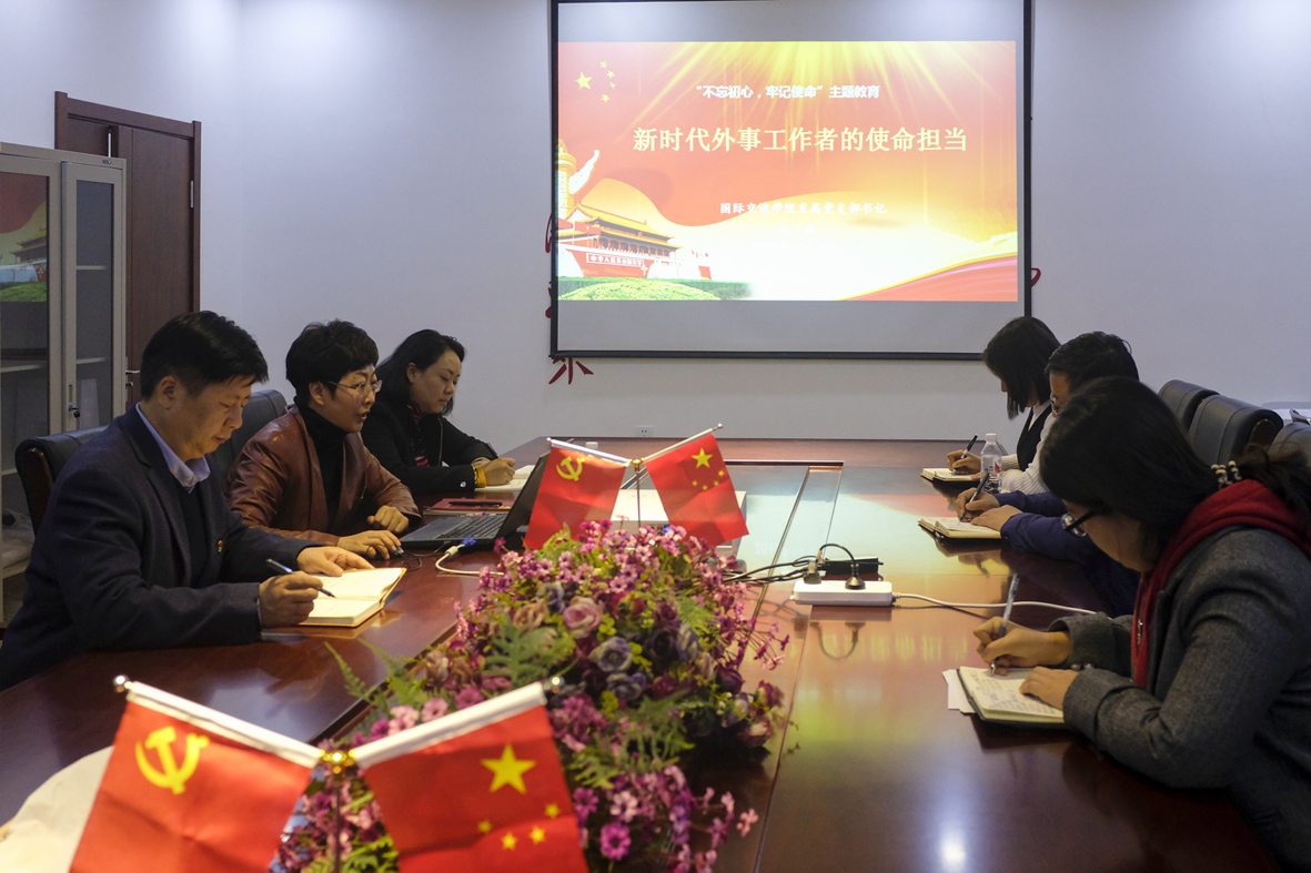 根据“不忘初心,牢记使命”主题教育工作安排,为切实提高广大党员的思想认识,进一步推动主题教育深入开展,10月24日下午,国际交流学院院长兼直属党支部书记骆颖在学院会议室为全体党员上了题为《新时代外事工作者的使命担当》的专题党课。