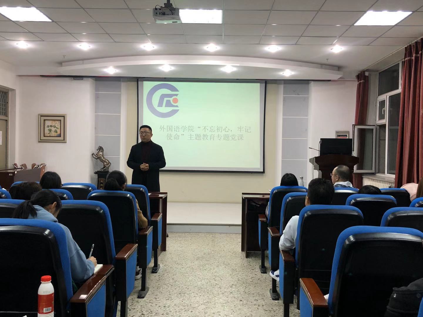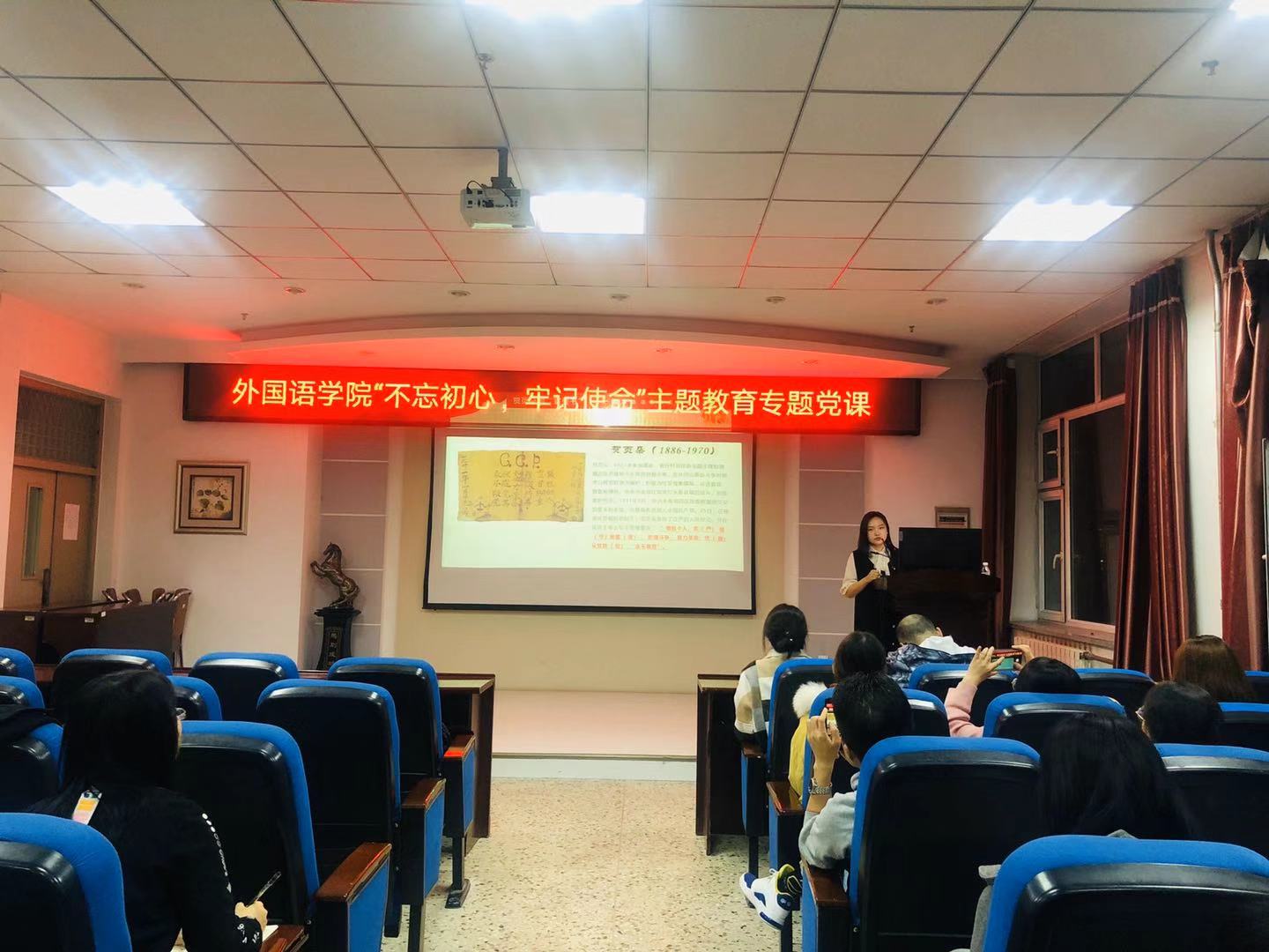 为深入学习贯彻“不忘初心,牢记使命”主题教育精神和要求,进一步推动主题教育的开展,外国语学院学生党支部书记袁野、李欣书分别为学院入党积极分子和发展对象作“不忘初心、牢记使命”专题党课。