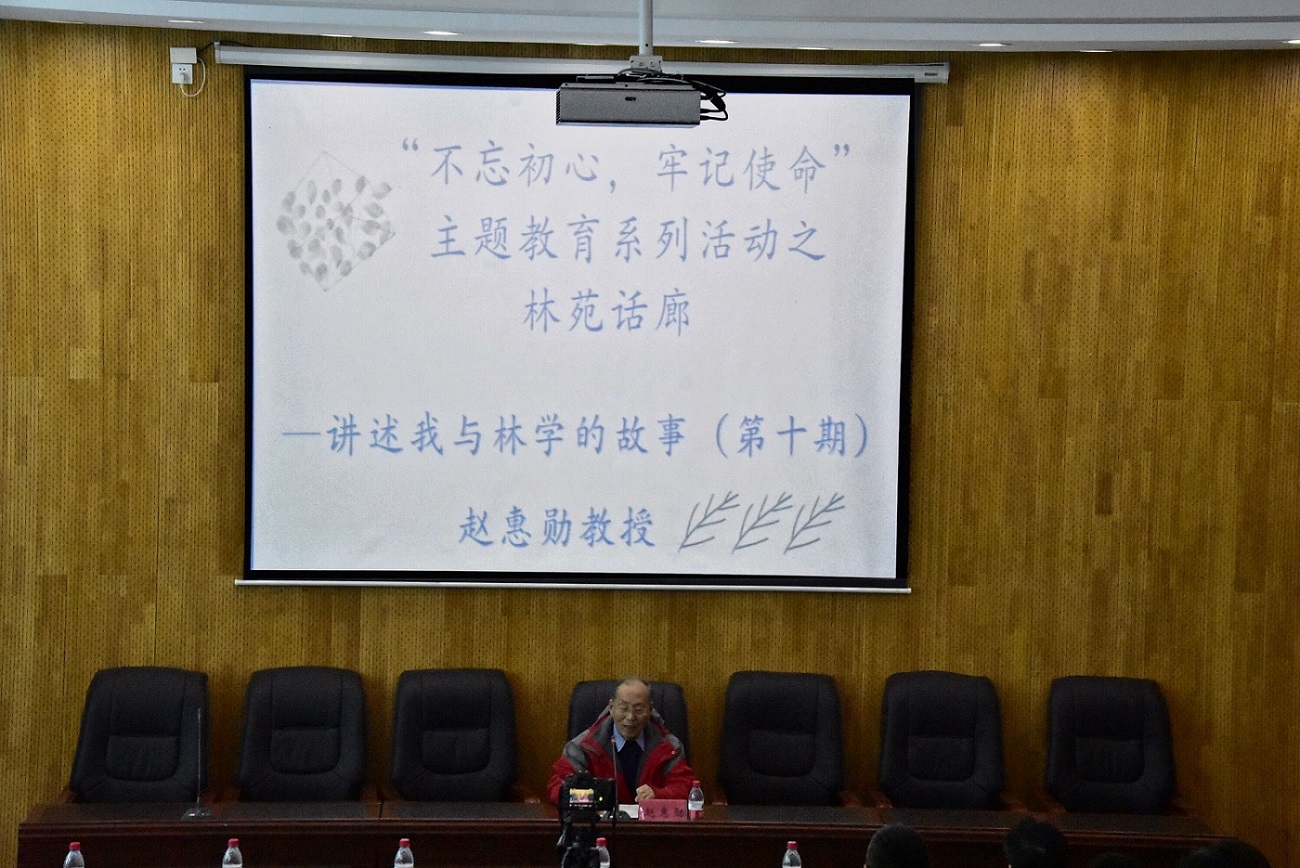 10月30日下午,林学院第十期林苑话廊在主西104会议室举办,学院党委邀请赵惠勋教授作了“不忘初心,牢记使命——我与林学的故事”报告。
