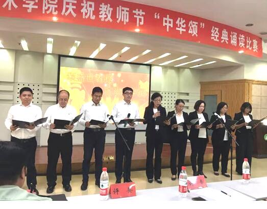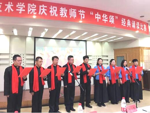 诵读经典,不忘初心;礼赞祖国,牢记使命。9月11日下午,工程技术学院在图书馆多功能厅举办了工程技术学院庆祝教师节“中华颂”经典诵读比赛。工程技术学院全体教职工及部分学生代表参加了诵读活动。