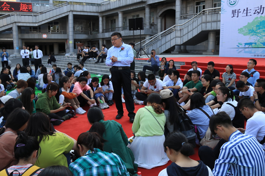 为迎接野生动物与自然保护地学院2019级新生,帮助他们了解学院专业情况,尽快融入校园生活,学院为新生们精心设计了“入学第一课”。学院在游泳馆门前搭建了精美的花门,铺设了红毯和人造草坪,8月31日下午,野生动物与自然保护地学院2019级新生师生见面会暨学科、专业介绍会隆重举行。中国工程院院士、野生动物与自然保护地学院名誉院长马建章教授、学院领导、学术带头人、各专业负责人和教师、辅导员老师、2019级研究生、本科生及部分新生家长齐聚一堂。本次见面会共分为青春寄语、梦想新征程、学科、专业介绍三个篇章。