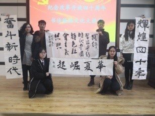 活动结束后,2018级王瑞同学表示,这次活动让她认识到书法是在黑与白、点与线的千变万化中完成的精神创造和情感宣泄,这种形式表现出的改革开放的精神内涵与中华传统文化完美融合在了一起。