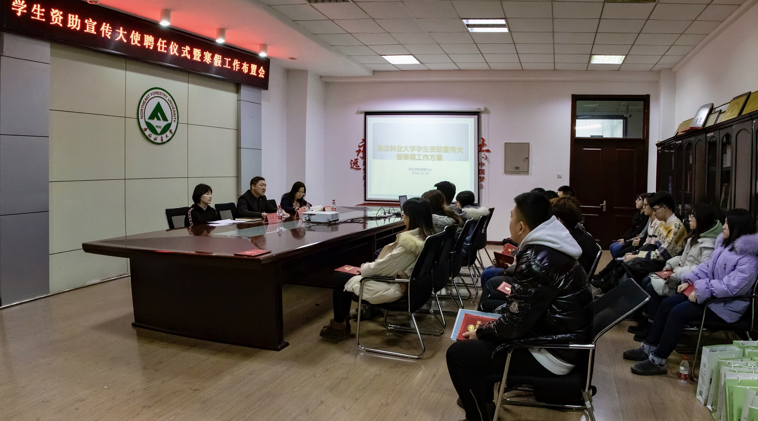 12月20日,我校第二届“学生资助宣传大使”聘任仪式暨寒假工作布置会在综合办公楼219举行。
