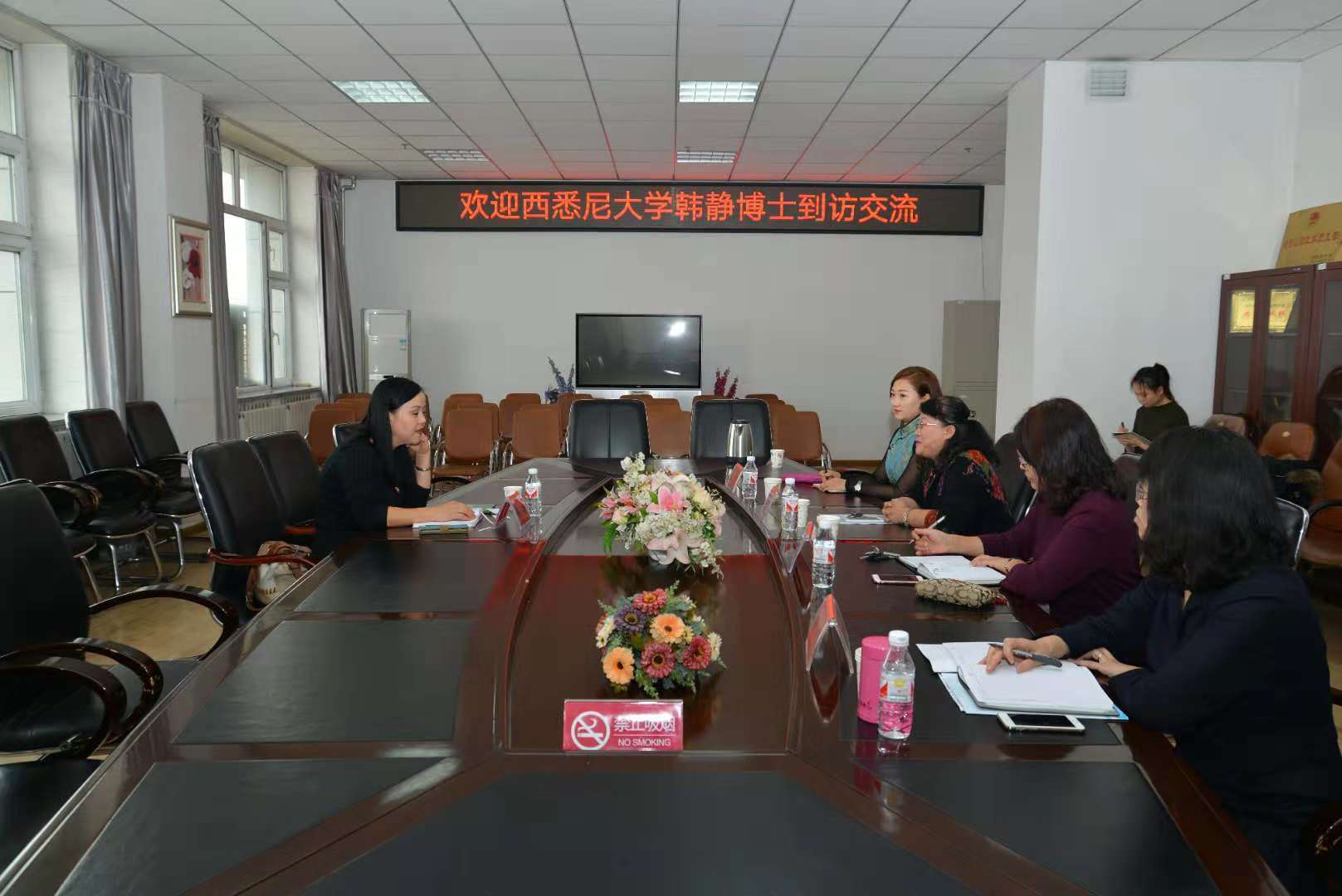 王丹院长对我校和外国语学院的历史规模、教职工结构、对外合作交流等情况做以详尽介绍,韩静博士对西悉尼大学的建校历史、校园文化、联合办学特色等方面进行了介绍。双方就本科生和研究生的合作项目进行意向性交流,并形成了共识。